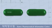 미황색-진한갈색의 분말이 든 상·하부 녹색의 경질캡슐제