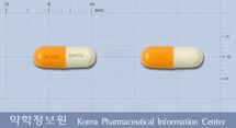 무색투명의 점조한 액을 넣은 담황색을 띤 타원형의 연질캡슐제