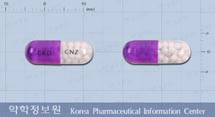 흰색의 펠렛이 함유된 상부 투명한 자색, 하부 투명한 경질캡슐